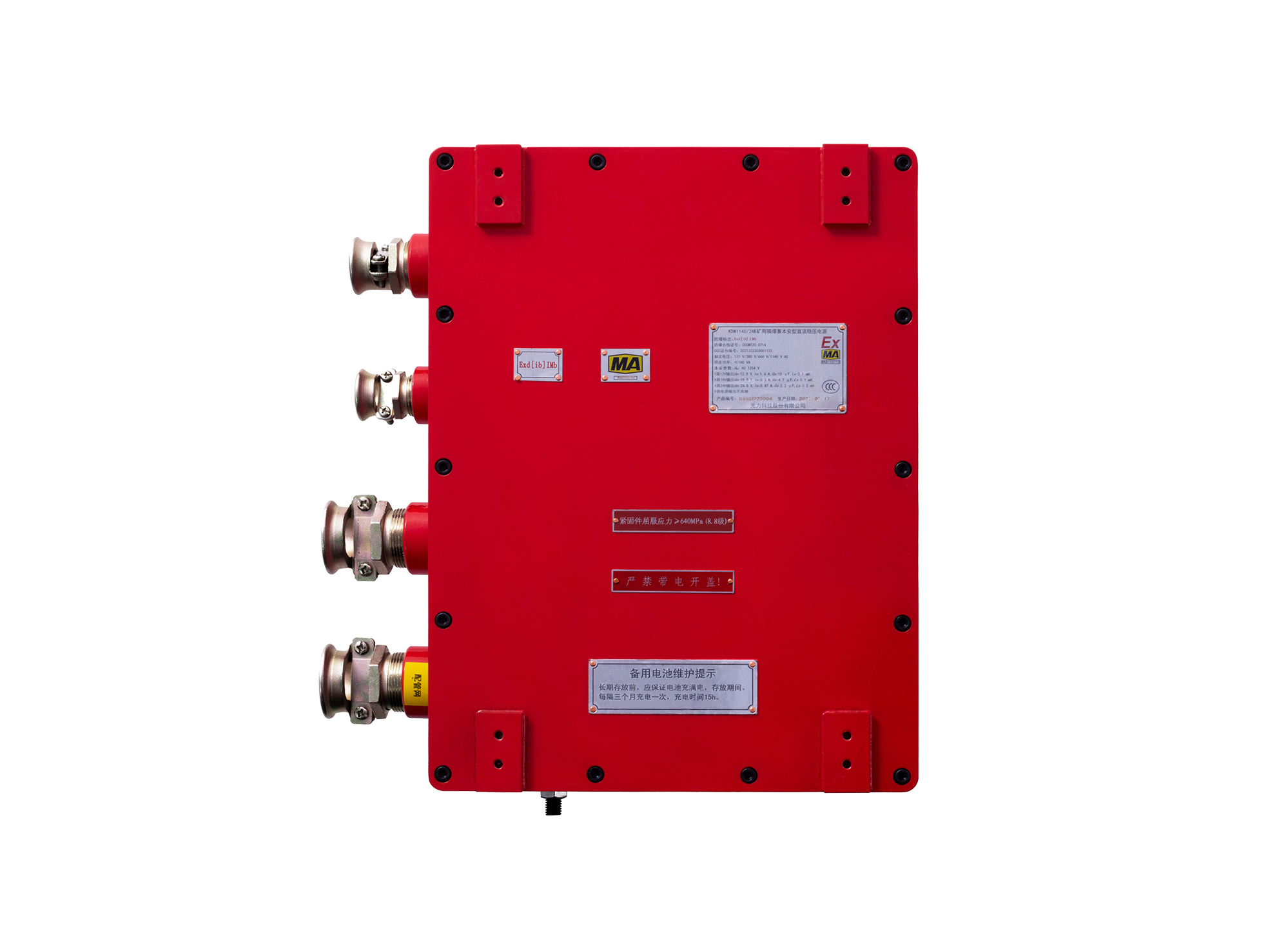 KDW1140/24B Взрывозащищенный и искробезопасный стабилизированный источник питания постоянного тока для угольных шахт (далее именуемый источником питания) — это источник питания класса ib, который в основном обеспечивает питанием подземные подстанции и датчики. Источник питания имеет несколько выходов и полностью изолирован. Каждый источник питания имеет защиту от перенапряжения, перегрузки по току и короткого замыкания. Резервная батарея использует экологически чистый никель-водородный аккумулятор.