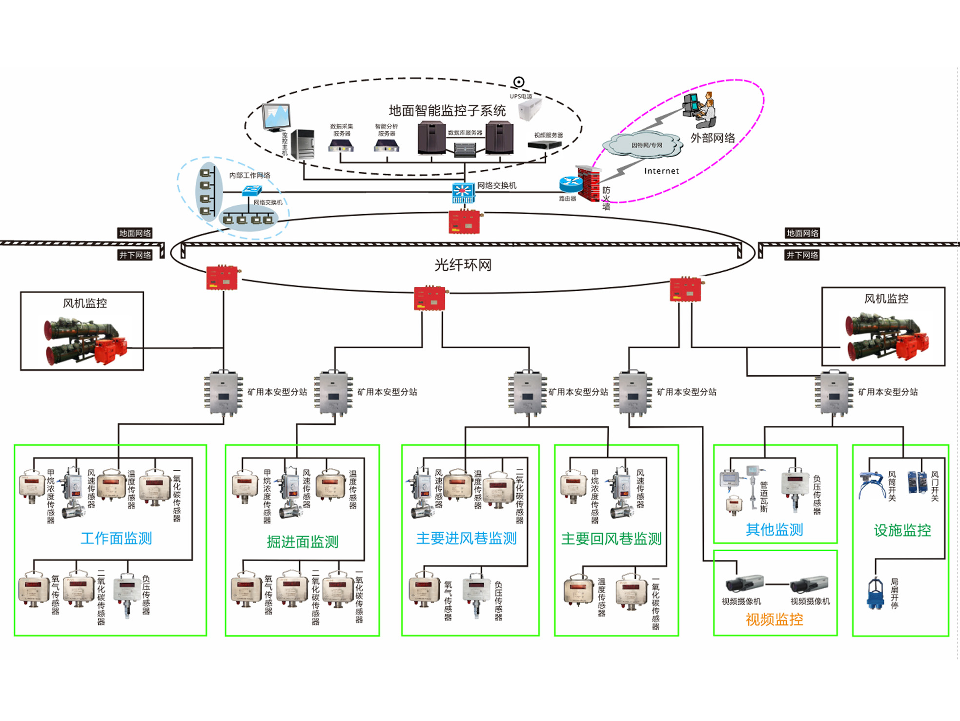 KJ835X — это комплексная система мониторинга и связи нового поколения, основанная на датчиках и оборудовании Интернет вещей, специально разработана для угледобывающей промышленности. Система основана на передовых технологиях датчиков и анализа больших данных, обеспечивая точные измерения, стабильную передачу и надежную работу. Система интегрирована с передовыми интеллектуальными моделями анализа для автоматического анализа и обнаружения аномалий. Система предназначена для всестороннего мониторинга, анализа и контроля персонала, оборудования, окружающей среды и производственного процесса в режиме реального времени для обеспечения безопасного производства в угольных шахтах. KJ835X не только отслеживает комплексные параметры всей угольной шахты, включая состояние воздуха в подземной выработке, состояние системы вентиляции, состояние дегазации, видеонаблюдение, положение персонала и оборудования, состояние оборудования, а также поддерживает интеграцию внешних систем, таких как электрическое управление и связь.