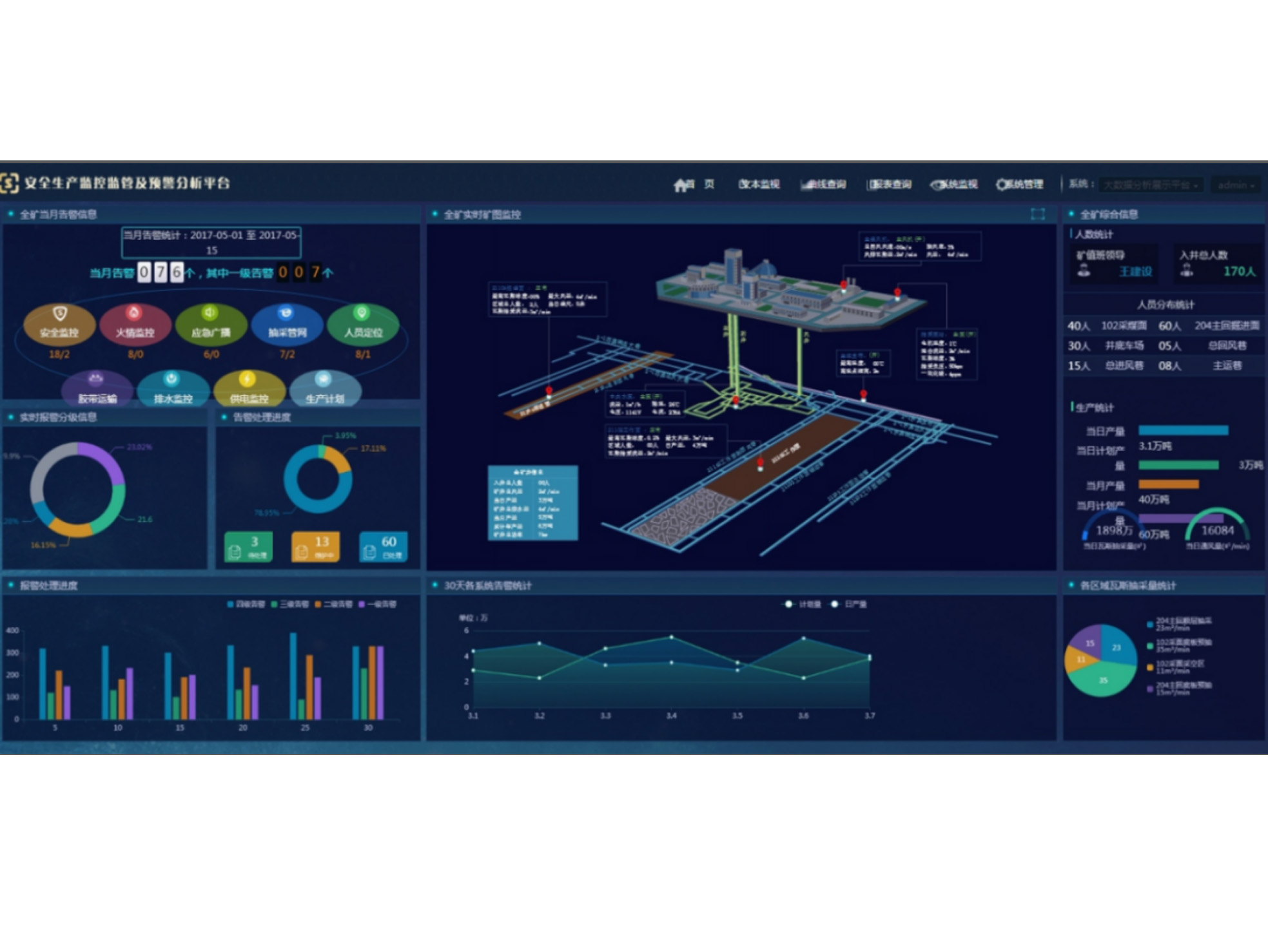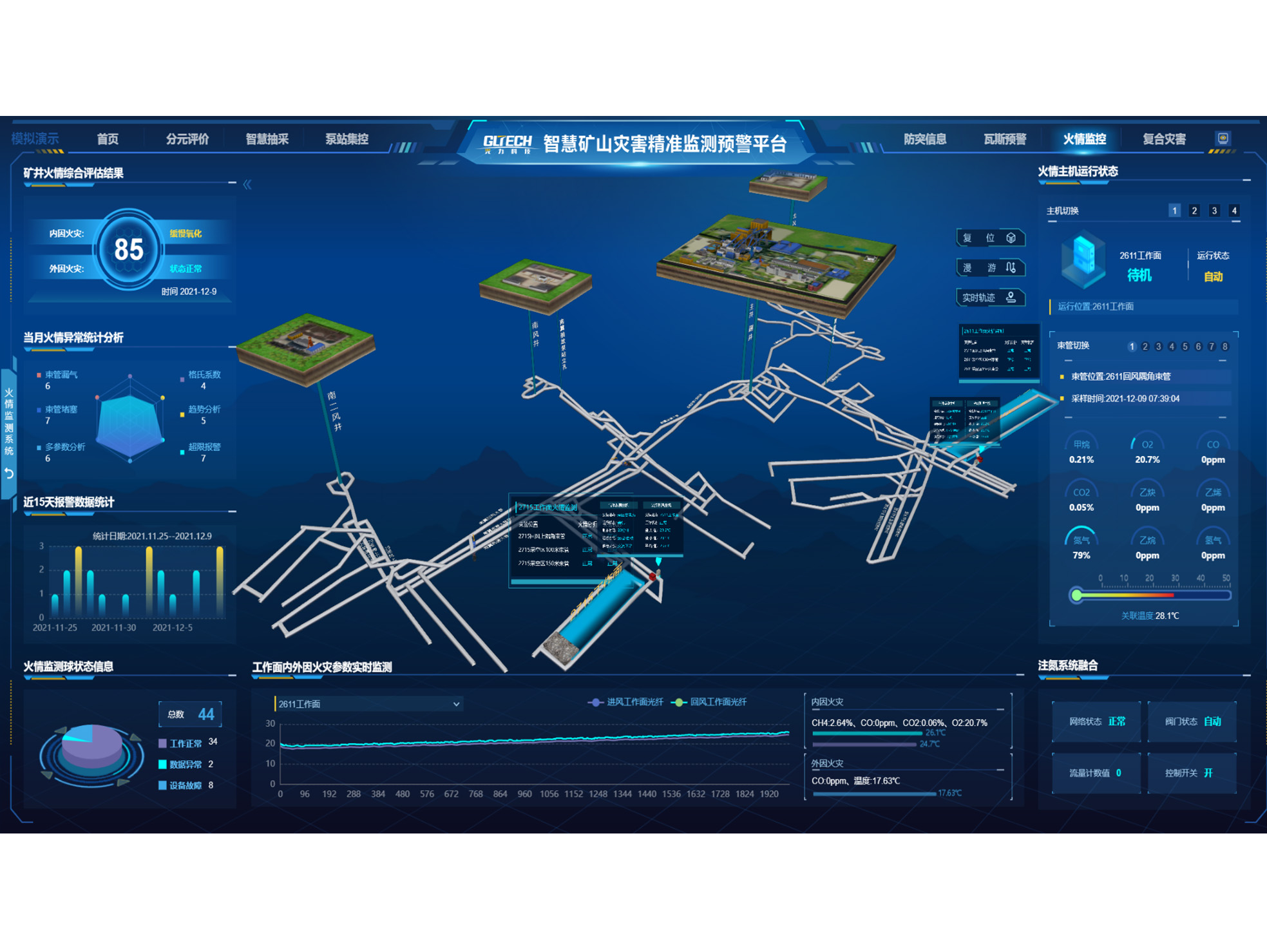 KJ835X — это комплексная система мониторинга и связи нового поколения, основанная на датчиках и оборудовании Интернет вещей, специально разработана для угледобывающей промышленности. Система основана на передовых технологиях датчиков и анализа больших данных, обеспечивая точные измерения, стабильную передачу и надежную работу. Система интегрирована с передовыми интеллектуальными моделями анализа для автоматического анализа и обнаружения аномалий. Система предназначена для всестороннего мониторинга, анализа и контроля персонала, оборудования, окружающей среды и производственного процесса в режиме реального времени для обеспечения безопасного производства в угольных шахтах. KJ835X не только отслеживает комплексные параметры всей угольной шахты, включая состояние воздуха в подземной выработке, состояние системы вентиляции, состояние дегазации, видеонаблюдение, положение персонала и оборудования, состояние оборудования, а также поддерживает интеграцию внешних систем, таких как электрическое управление и связь.