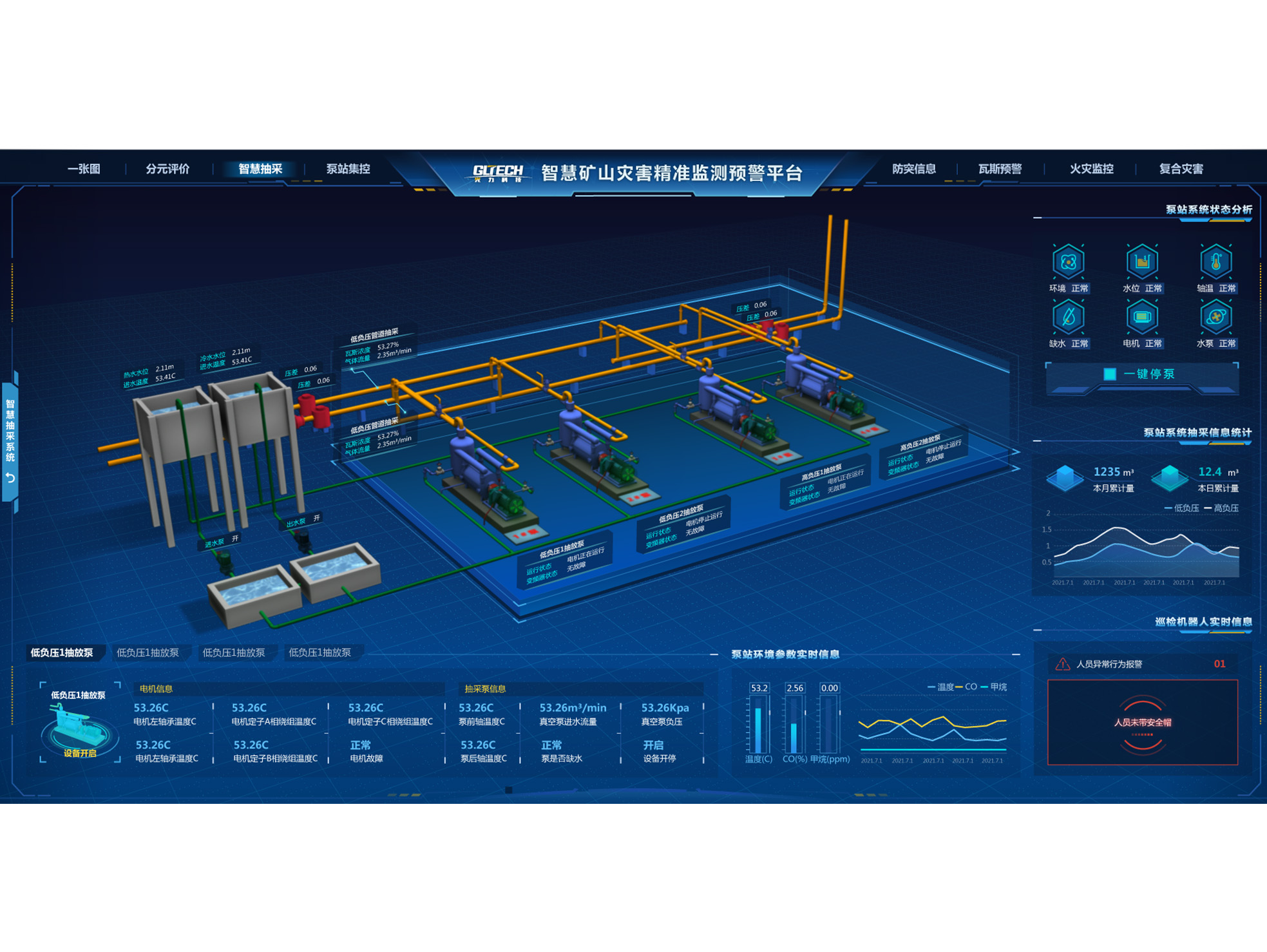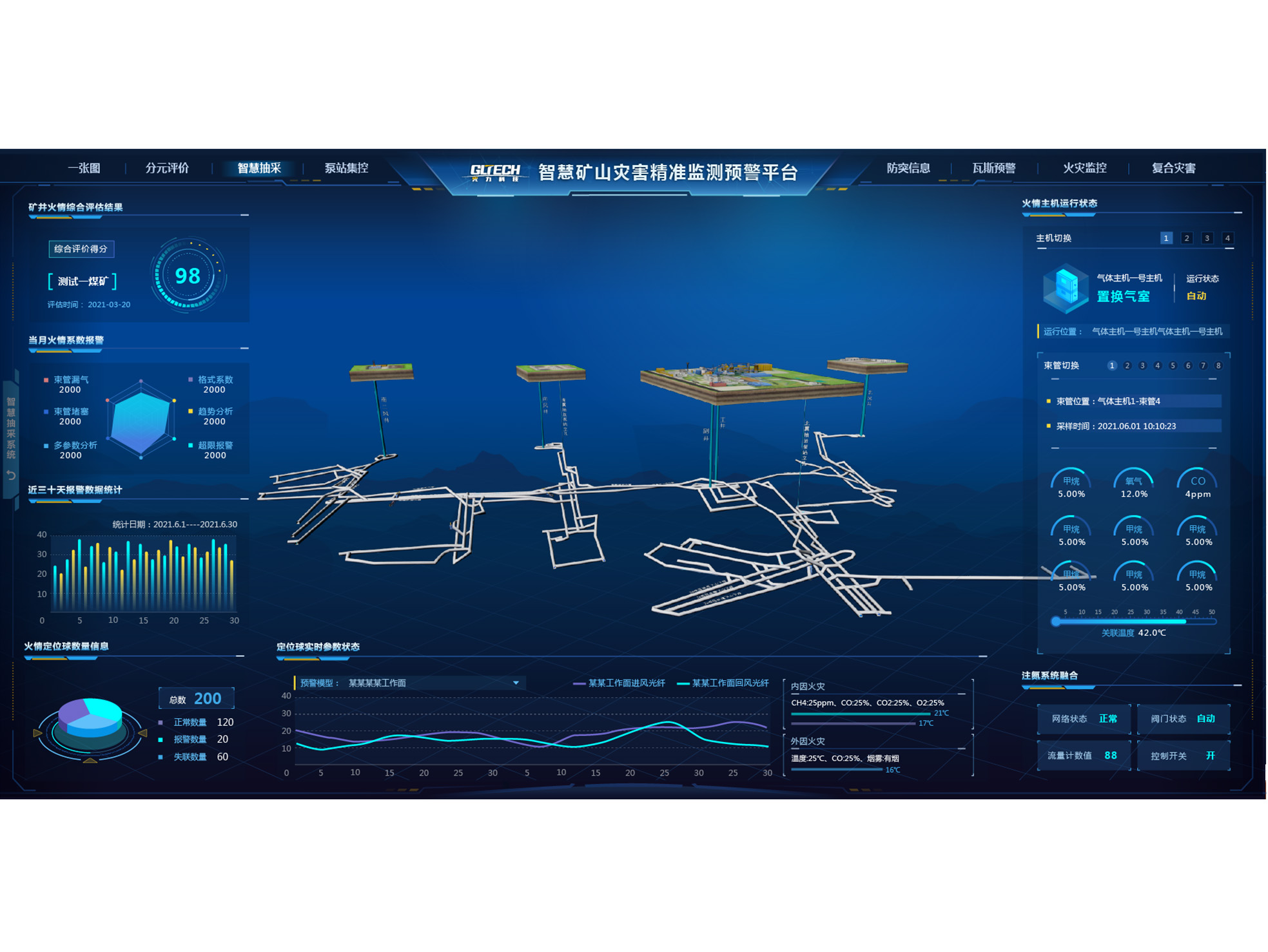 Система мониторинга метана и пыли в угольных шахтах KJ370 предназначена для мониторинга в реальном времени различных измерений трубопроводов в подземных угольных шахтах, включая газоотводные трубопроводы, трубопроводы скважин буровой площадки и насосные станции добычи. Она также обеспечивает онлайн-мониторинг параметров окружающей среды. Кроме того, ее можно использовать для мониторинга и контроля пыли на различных рабочих забоях в шахте. Это комплексное решение объединяет мониторинг сети добычи газа, мониторинг параметров окружающей среды, а также предотвращение и контроль пыли в угольных шахтах.