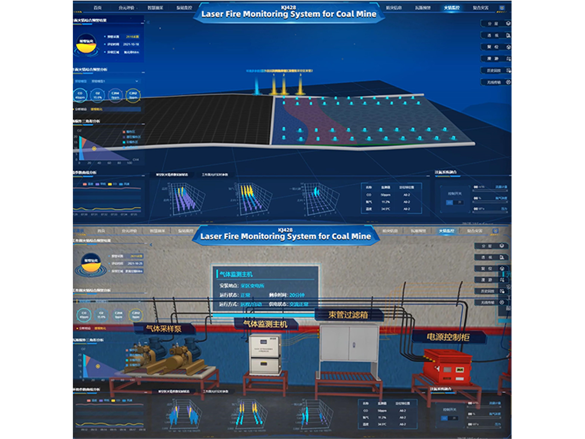 – Автономное управление и сигнализация: система может самостоятельно определять опасности и управлять отключениями питания, используя автоматическую сигнализацию для пределов концентрации газа и пыли.